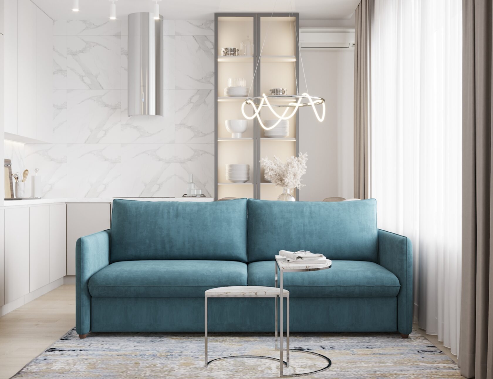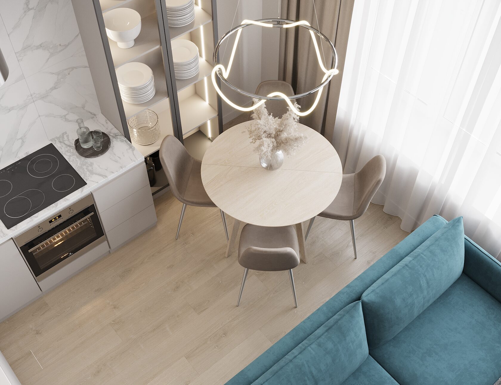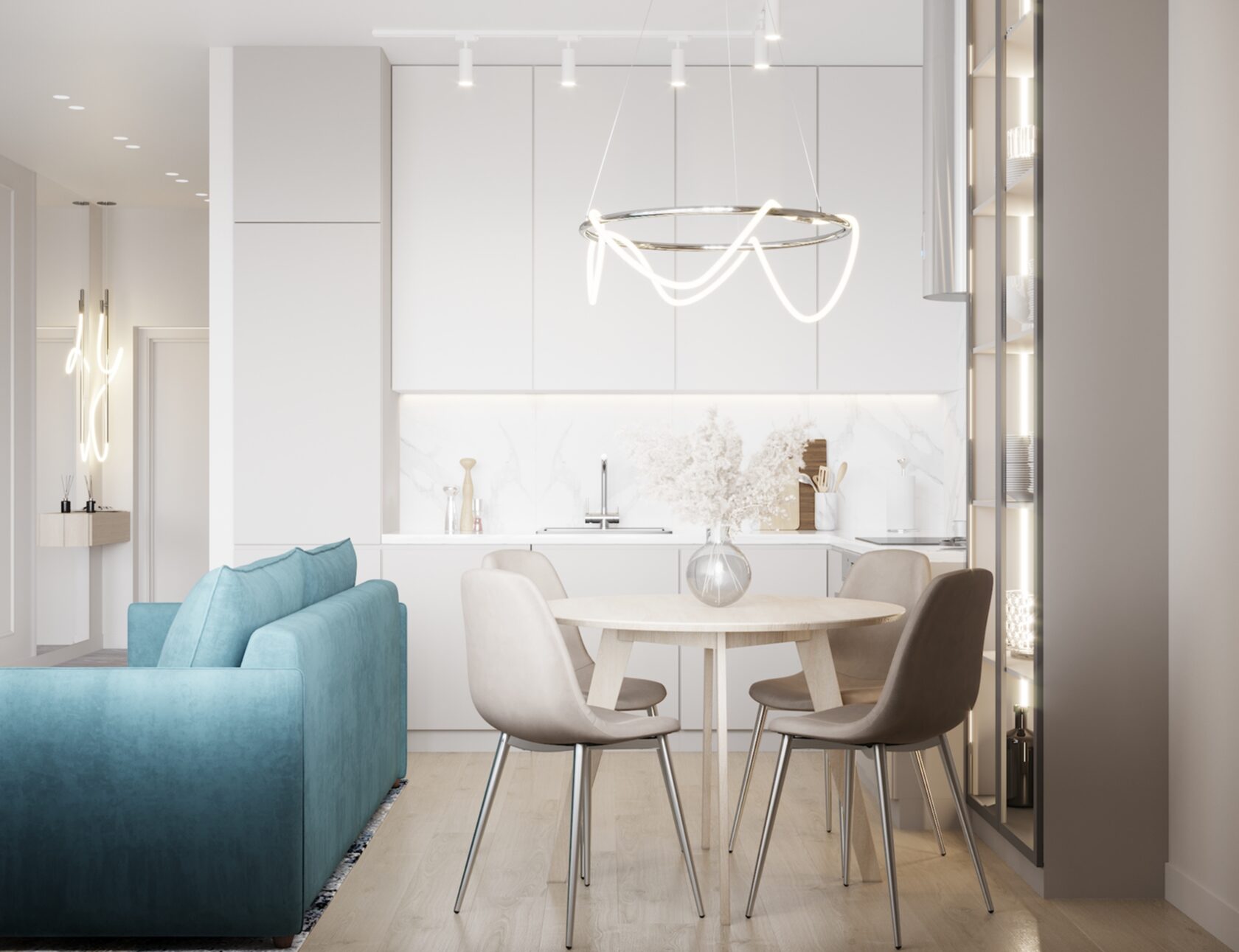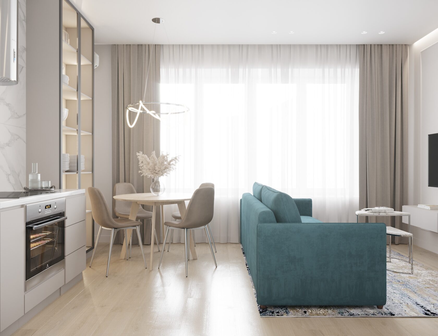 Дизайн проект квартиры для молодой семьи в воздушной гамме, площадью 48м² в районе центрального стадиона Динамо.