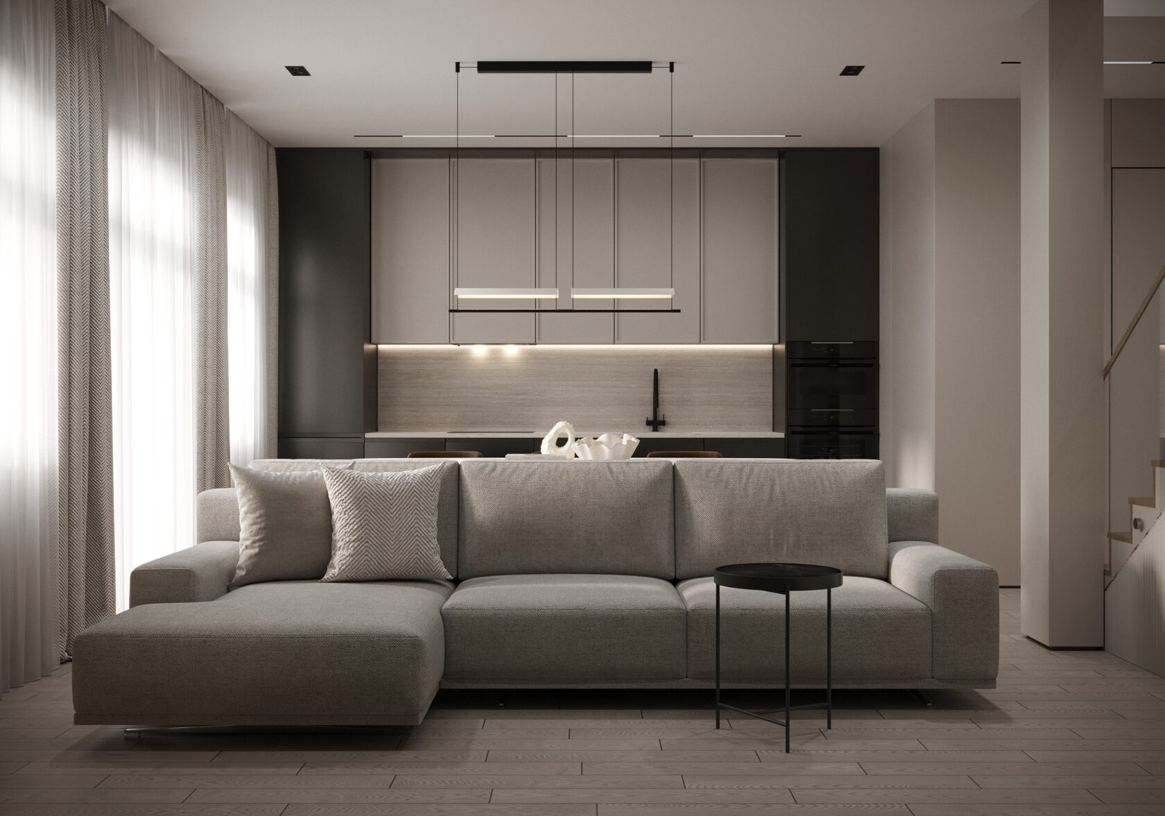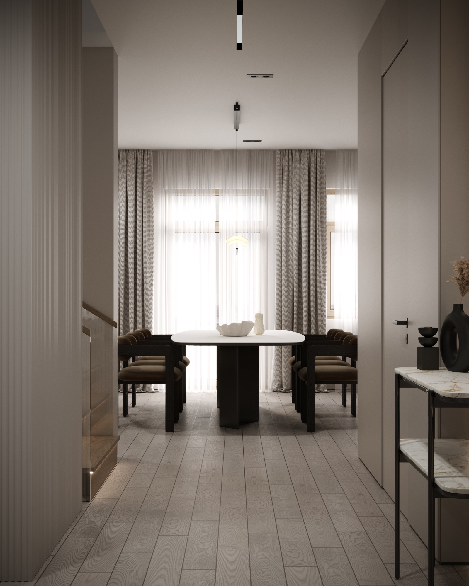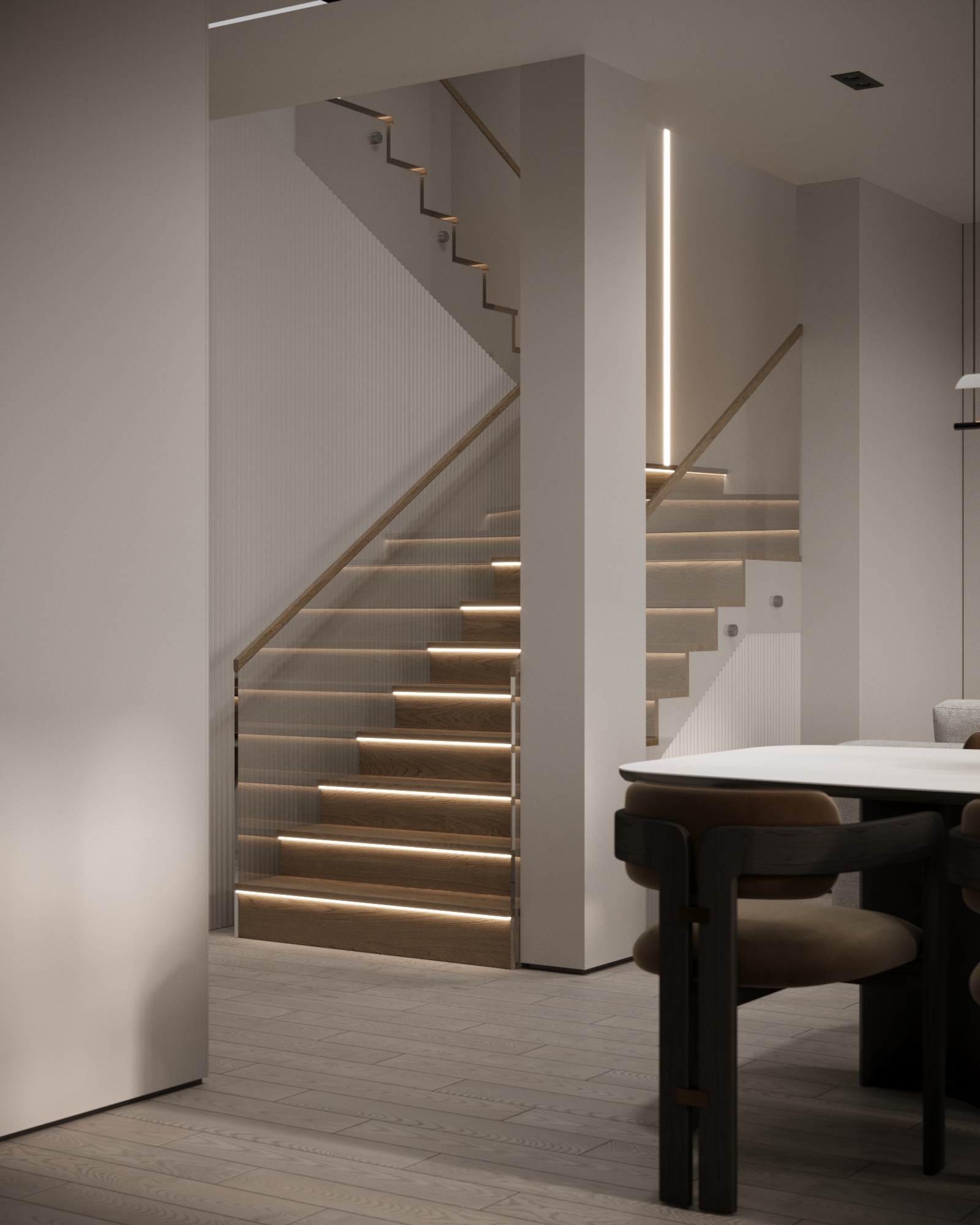 Дизайн проект интерьера трехэтажного таунхауса для молодой семьи из 4 человек, площадью 179м², в Одинцовском районе г. Москвы, по направлению Рублево-Успенского шоссе.